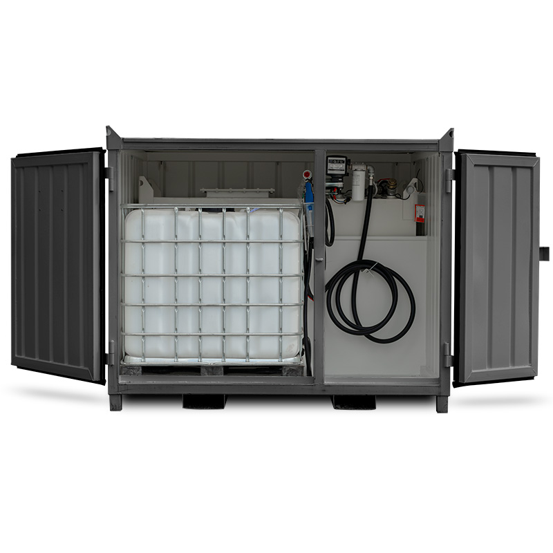 Containern innehåller en tank med en inre och en yttre del, där den yttre delen rymmer 125% av den inre delens volym. Detta skyddar miljön vid eventuellt läckage. Utrustad med inre skvalpskydd, låsbar dörr, fyra galvaniserade lyftöglor och gaffelfästen. Containern kan staplas på höjden, två st fyllda med bränsle och tre st utan bränsle.